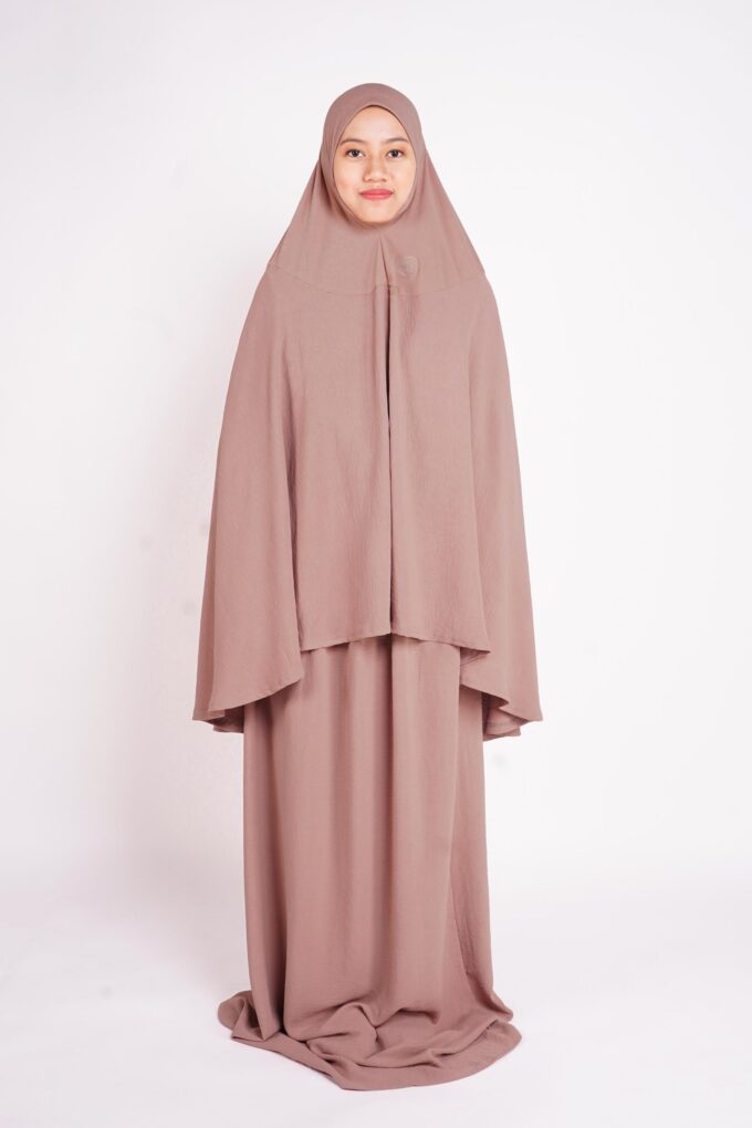 | Keterangan | Menggunakan fabrik yang selesa, sejuk & ringan serta ‘ironless’. Untuk ketahanan & keaslian fabrik tidak digalakkan guna mesin pengering. Telekung bersize ‘mini’ memudahkan untuk dibawa kemana sahaja terutama ketika ‘travel’. Ia juga didatangkan khas bersama beg kecil mengikut warna telekung. Walaupun rekaannya ringkas tetapi tetap mengekalkan ciri ciri mudah, mewah dan menawan. Logo ‘M’ yang disulam serta bertatahkan kristal Swarovski dibahagian telekung dan beg. |